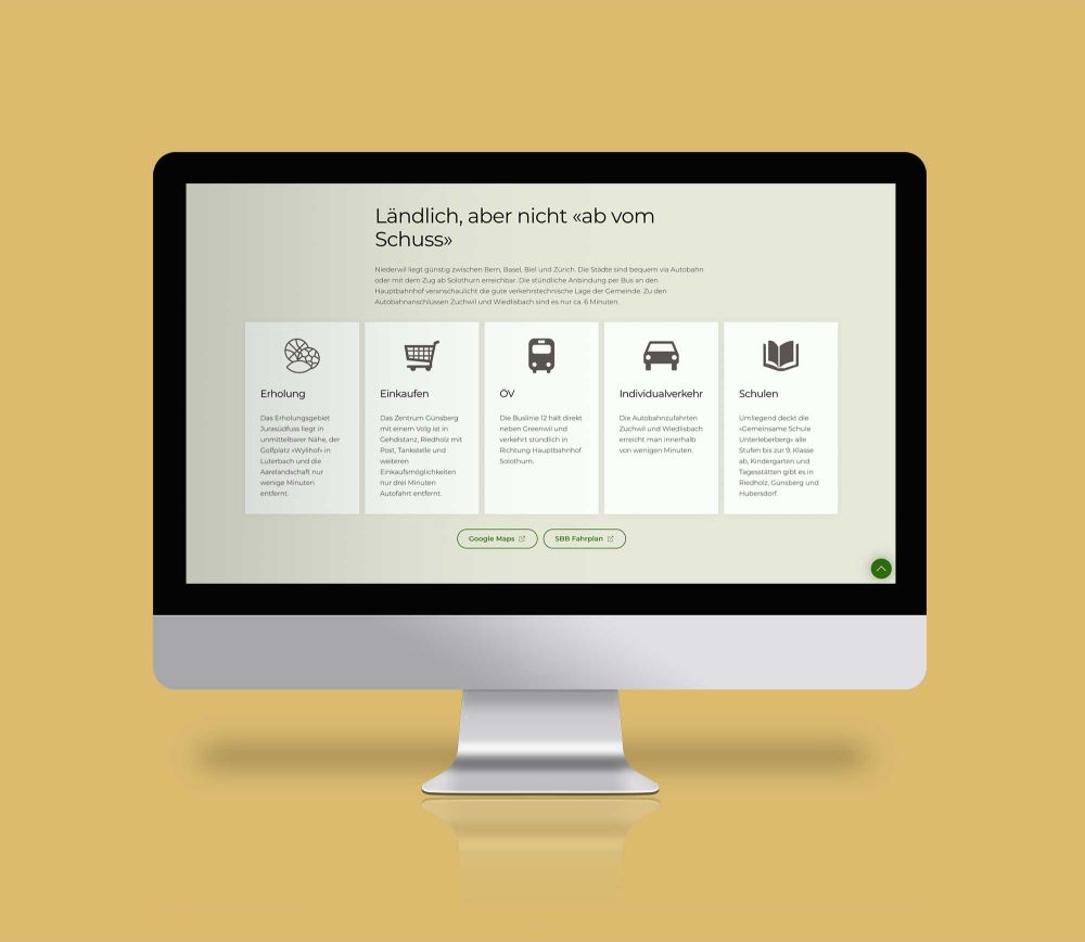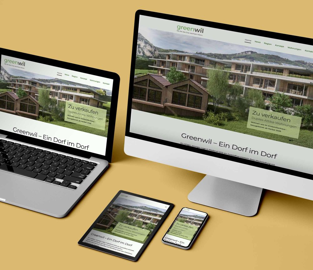 Es ist so ruhig, dass man das Gras wachsen hört – auf «Greenwil» trifft dieses Sprichwort buchstäblich zu. Der Name dieses gehobenen Bauprojekts ist eine Wortkreation aus seiner Lage im Grünen und aus Niederwil (Gemeinde Riedholz) am Jurasüdfuss nahe Solothurn. Greenwil ist auch eine Mission: Das Wohnprojekt will das ländliche Dorfleben fördern, sozusagen ein Generationenwohnen ermöglichen. Dabei spielen Ökologie, Feng-Shui und Natur eine wichtige Rolle.