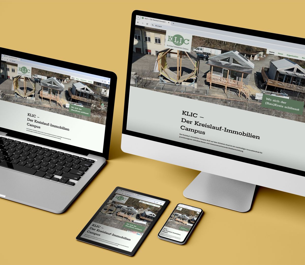 Kreislauf-Immobilien Campus, kurz KLIC. Der Name ist Programm. Wenn Initiant und Gründer Hugo Schumacher sagt: «Wir können nicht so weiterbauen wie bis anhin, mit diesen Betonwüsten und Wäldern aus Armierungseisen», ist das seine innerste Überzeugung. KLIC soll nichts weniger als die Bauwirtschaft revolutionieren. Es ist ein nachhaltiger Innovationshub für praxisbezogenes zirkuläres Bauen und ressourcenschonende Stadtentwicklung. Der Campus auf dem Attisholz-Areal bei Solothurn vereint Praxis, Forschung und Bildung rund um zirkuläres Bauen, ressourcenschonenden Materialeinsatz und remontable Bauweisen.